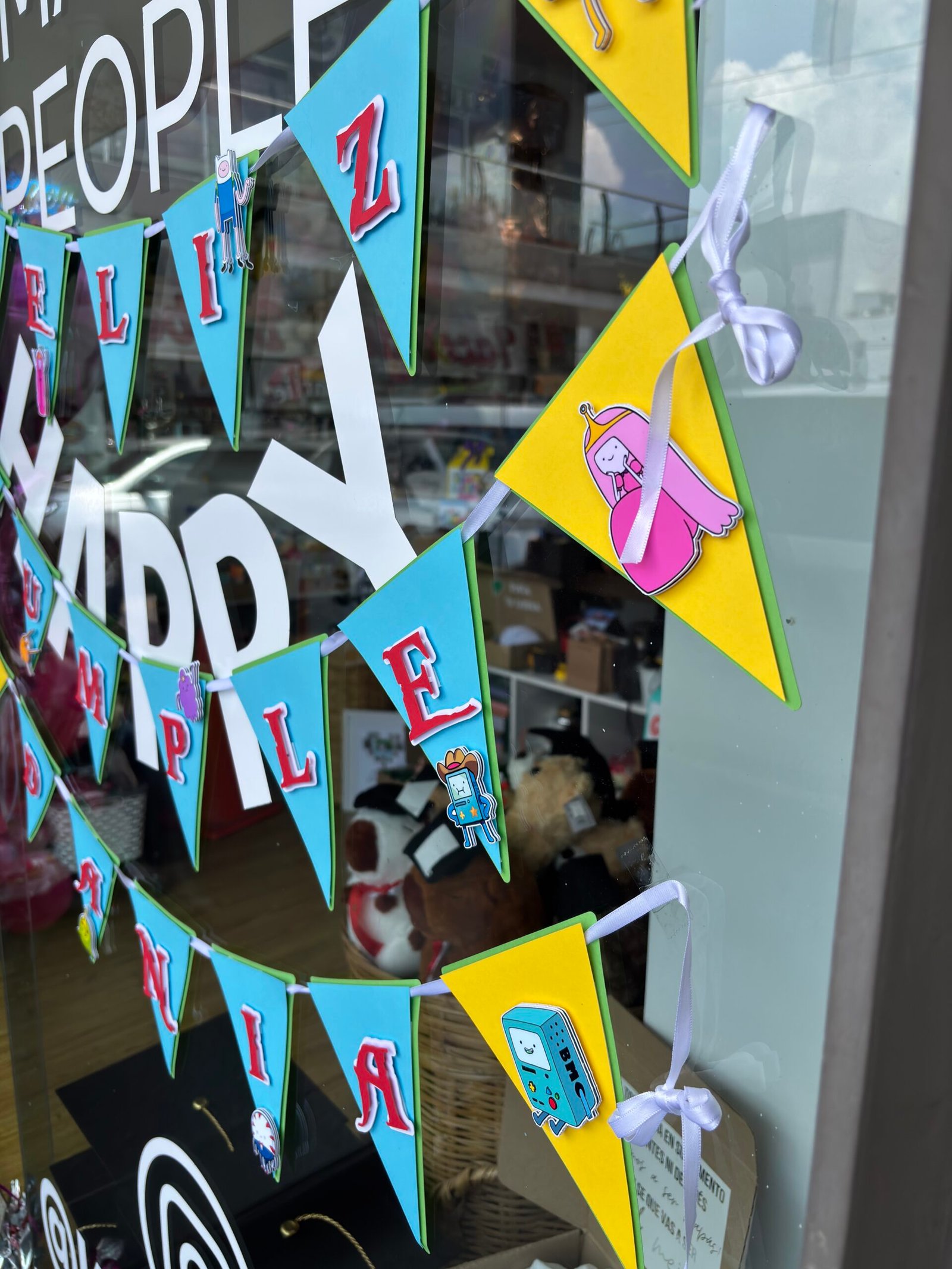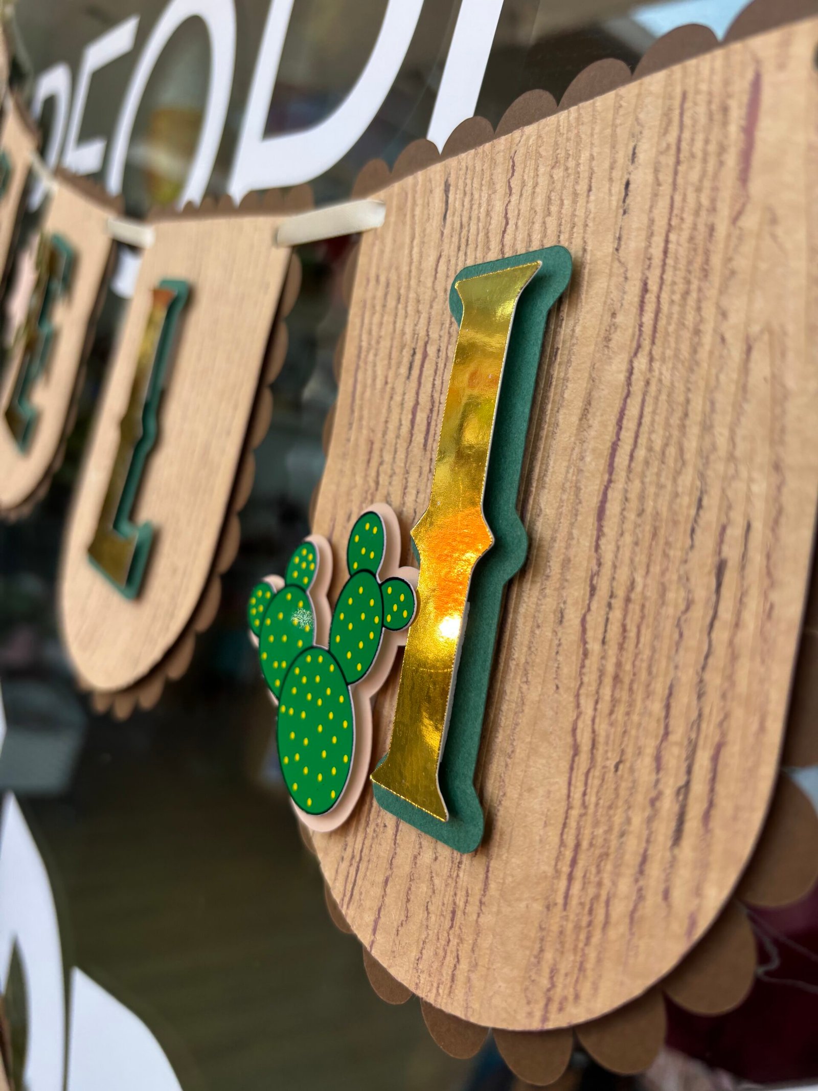 Decora el ambiente con globos o burbujas llenas de color y mensajes únicos, dale el toque final al pastel con un cake topper original, claro, no pueden faltar los bolos. No olvides los banderines, perfectos para ambientar y personalizar tu espacio de fiesta con frases, nombres o temáticas especiales.